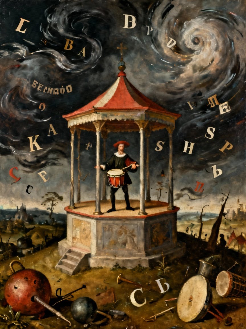 After four decades of creating word art, manonadune found a new catalyst in the heights and depths of Prague. The towers and basements of that city provided the impetus for Ancestral Strata—a series that connects his North Yorkshire present with his London birthplace and deep roots in the North East.